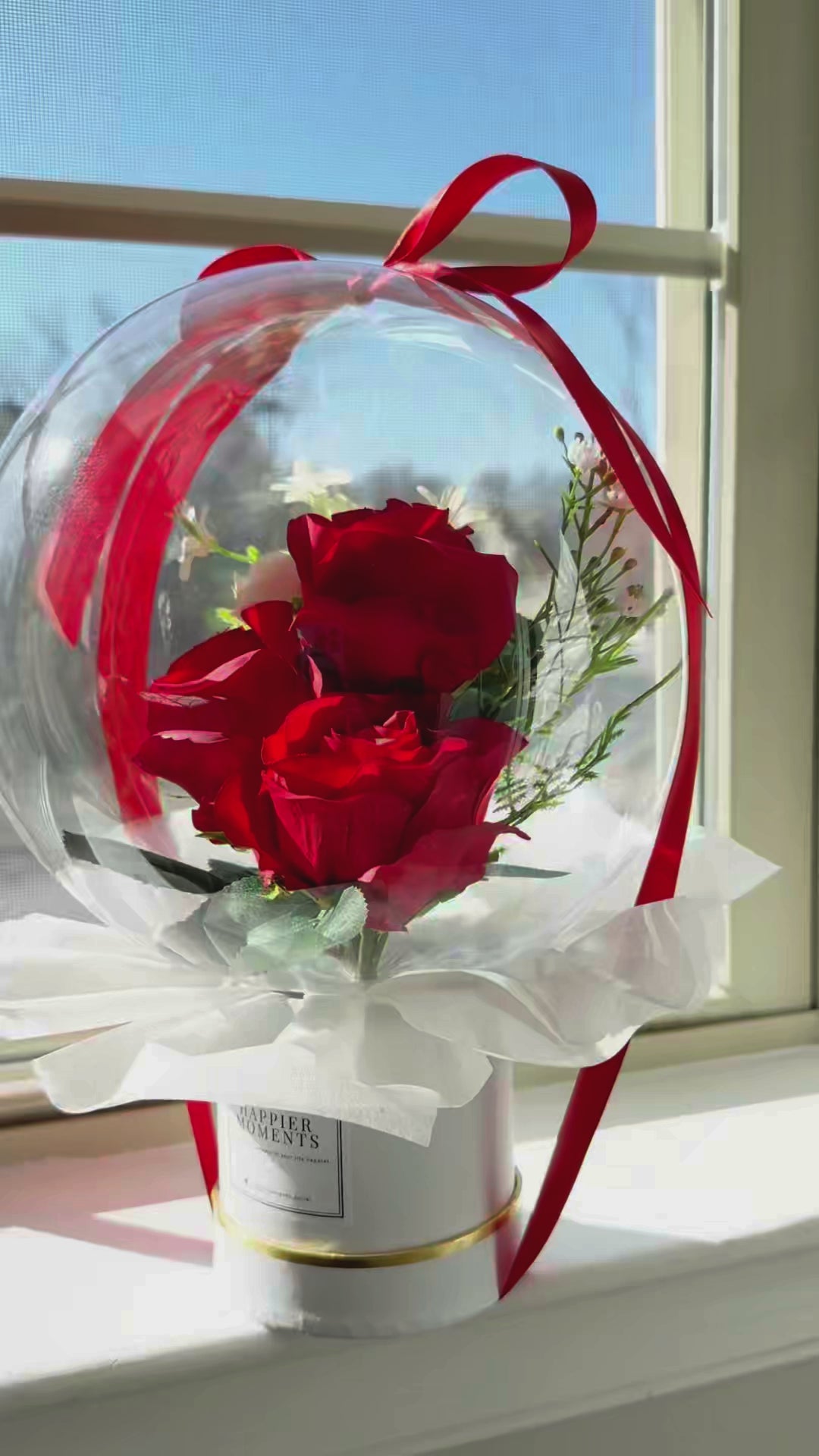 Mini Red Rose Flower Bobo Balloon Bouquet White Box | Birthday Mother's Day Valentine's Day Bridal Shower Baby Shower Anniversary Gift