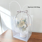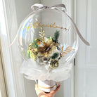 ➼ Artificial Flowers, Clear Balloon, Silky Ribbon, Round Gift Box, Tissue Papers