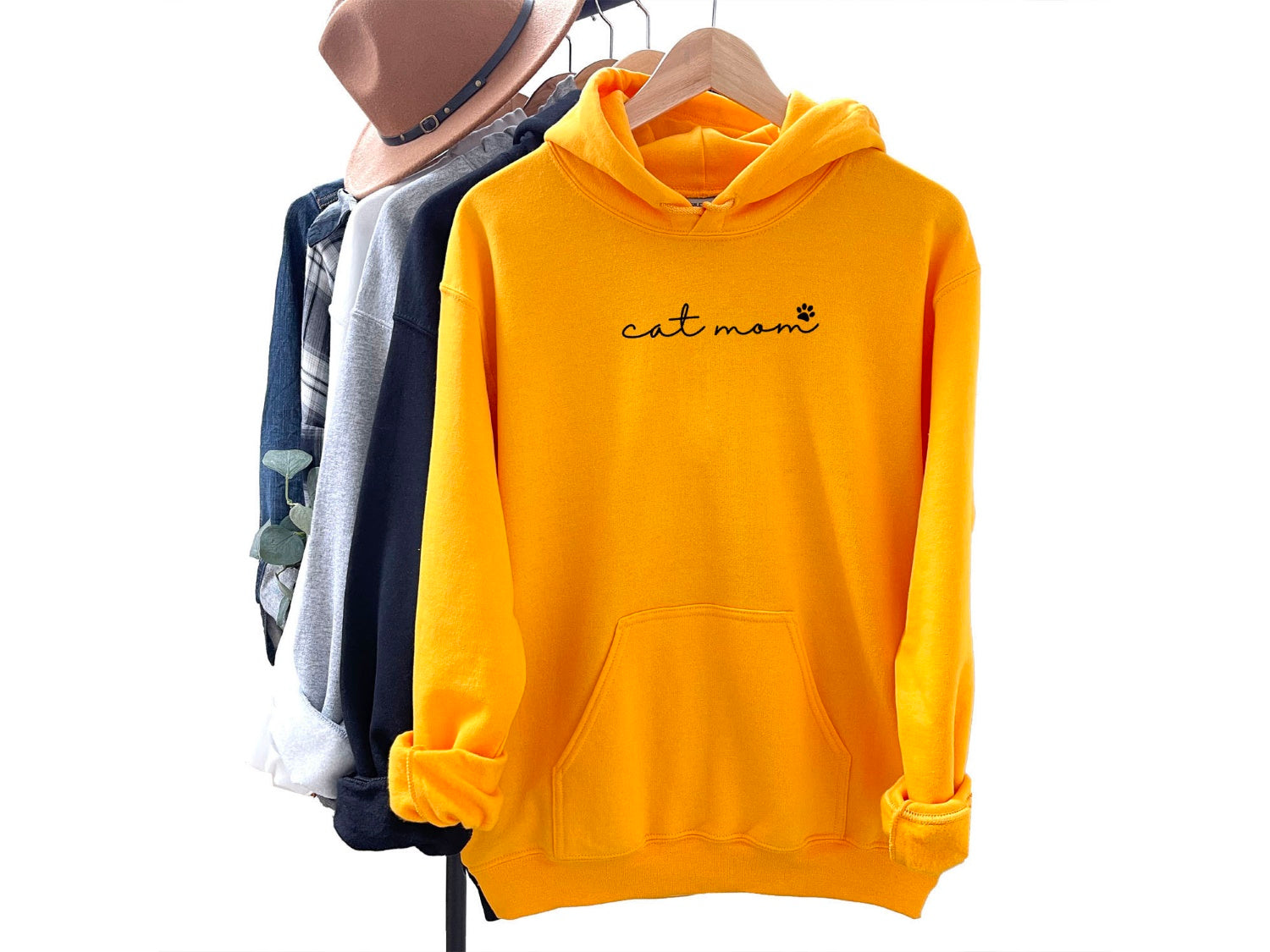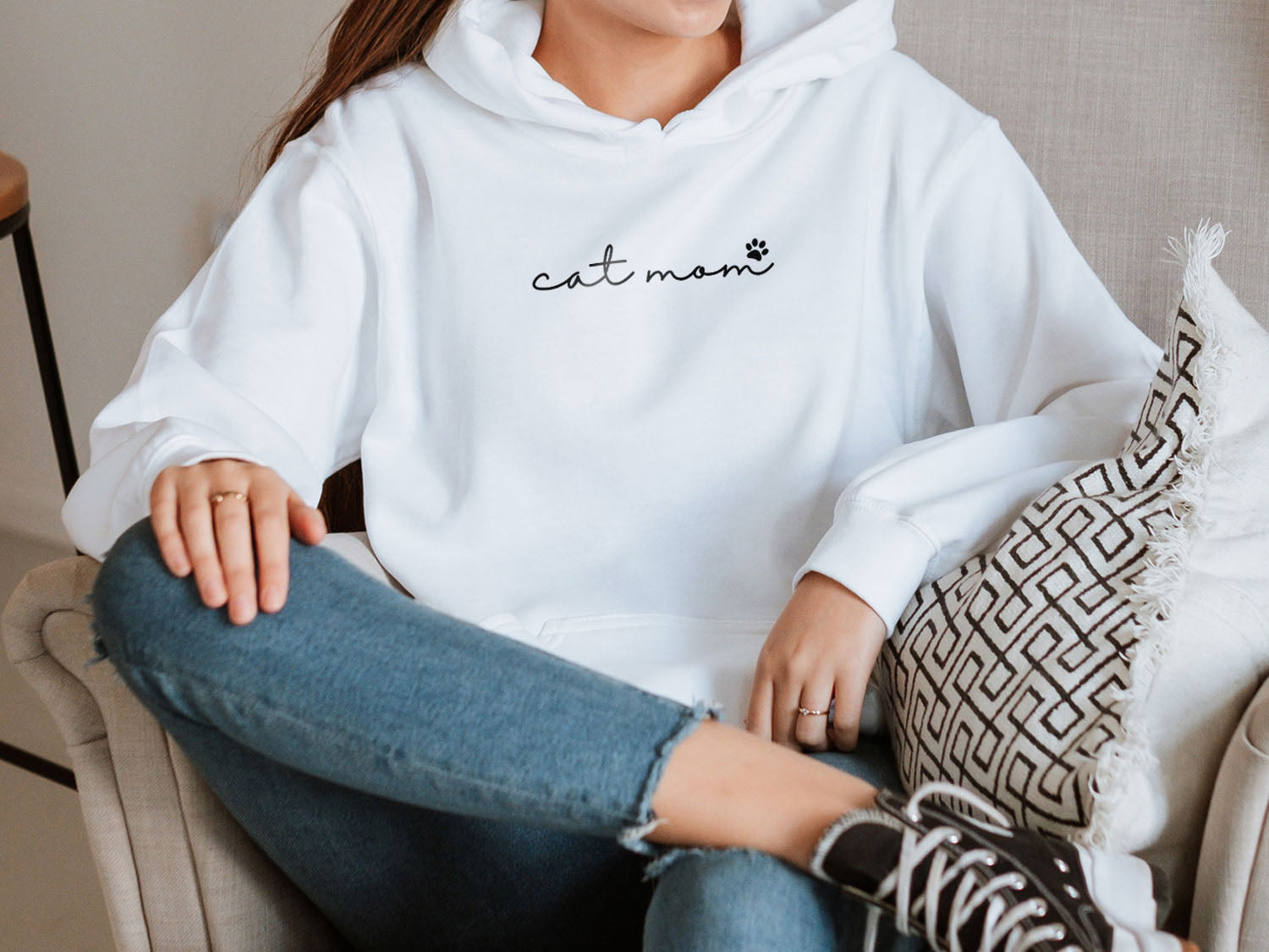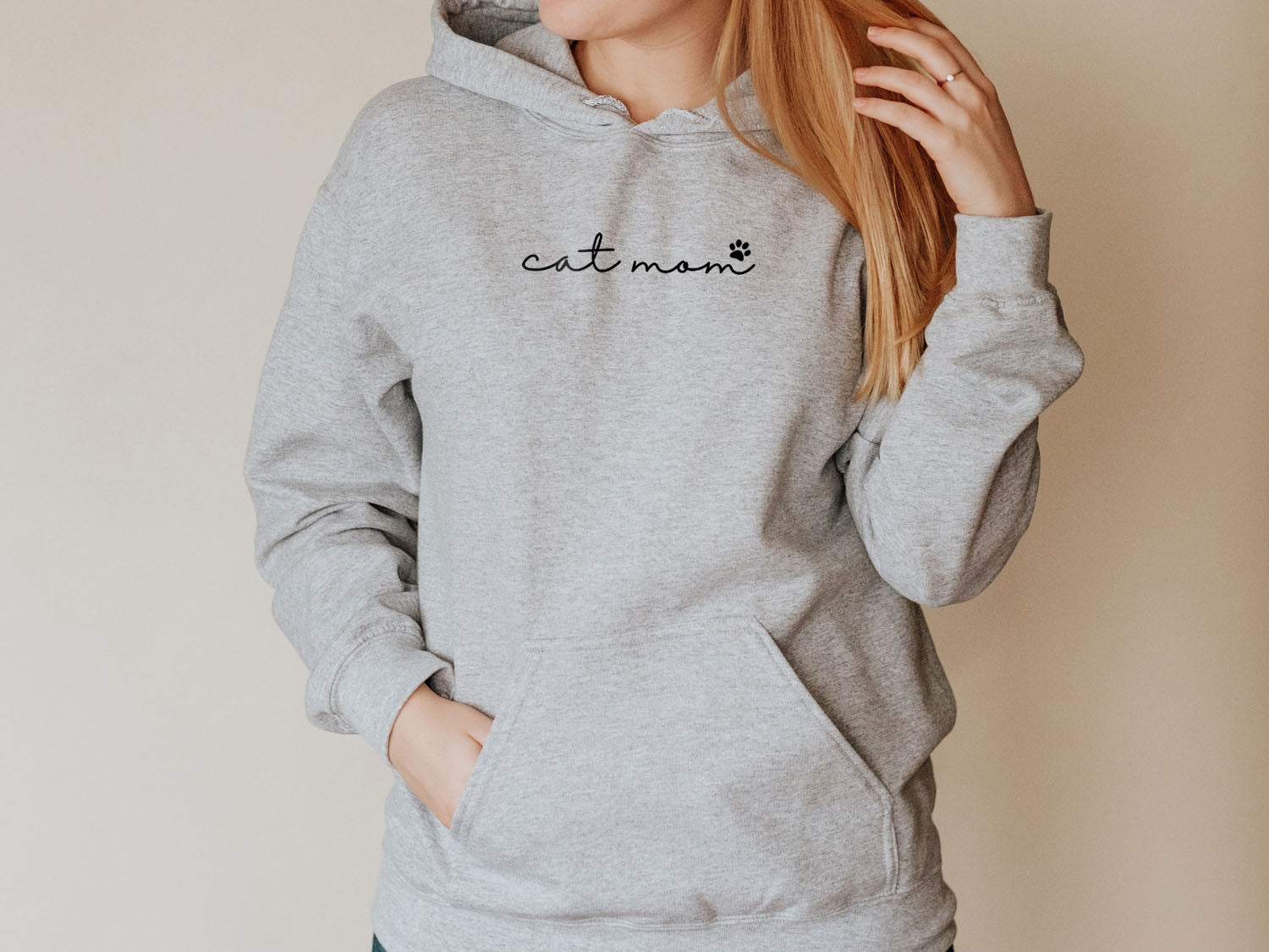 Cat Mom Small Letters Hoodie - Fun Pet Love Minimal Design Printed Hoodie