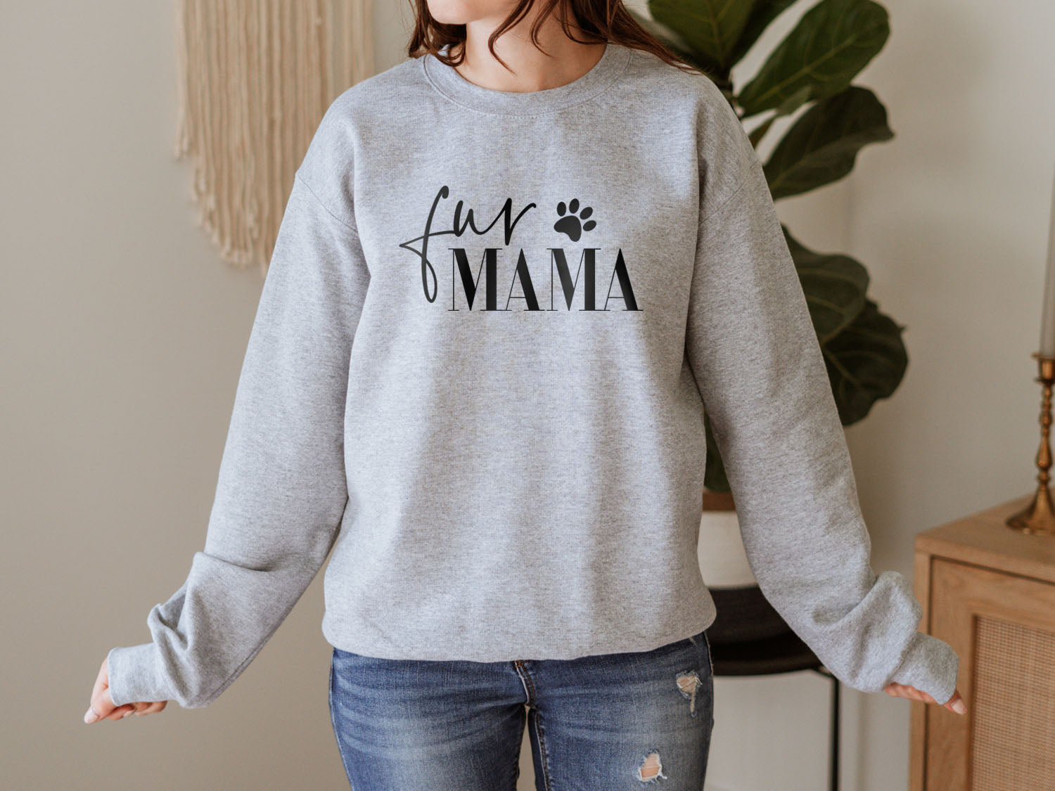 - Fur Mama With Paw Sweatshirt - Fun Pet Love Minimal Design Printed Sweatshirt.