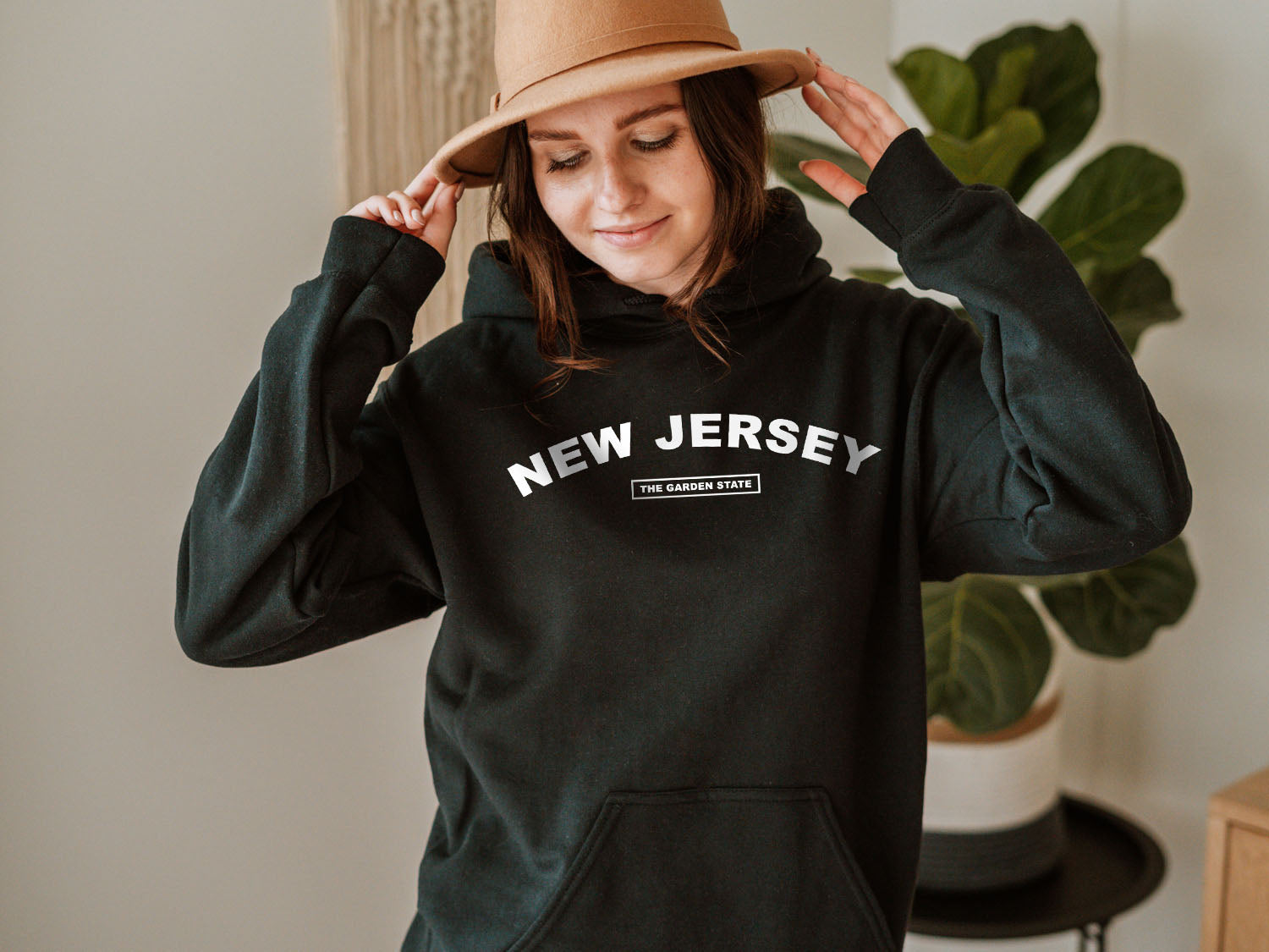 - New Jersey The Garden State Hoodie - United States Name & Slogan Minimal Design Printed Hoodie.