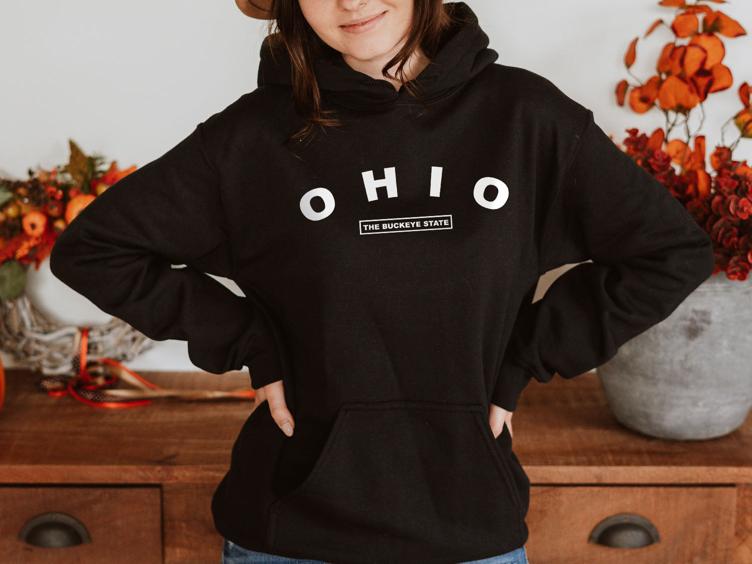 - Ohio The Buckeye State Hoodie - United States Name & Slogan Minimal Design Printed Hoodie.