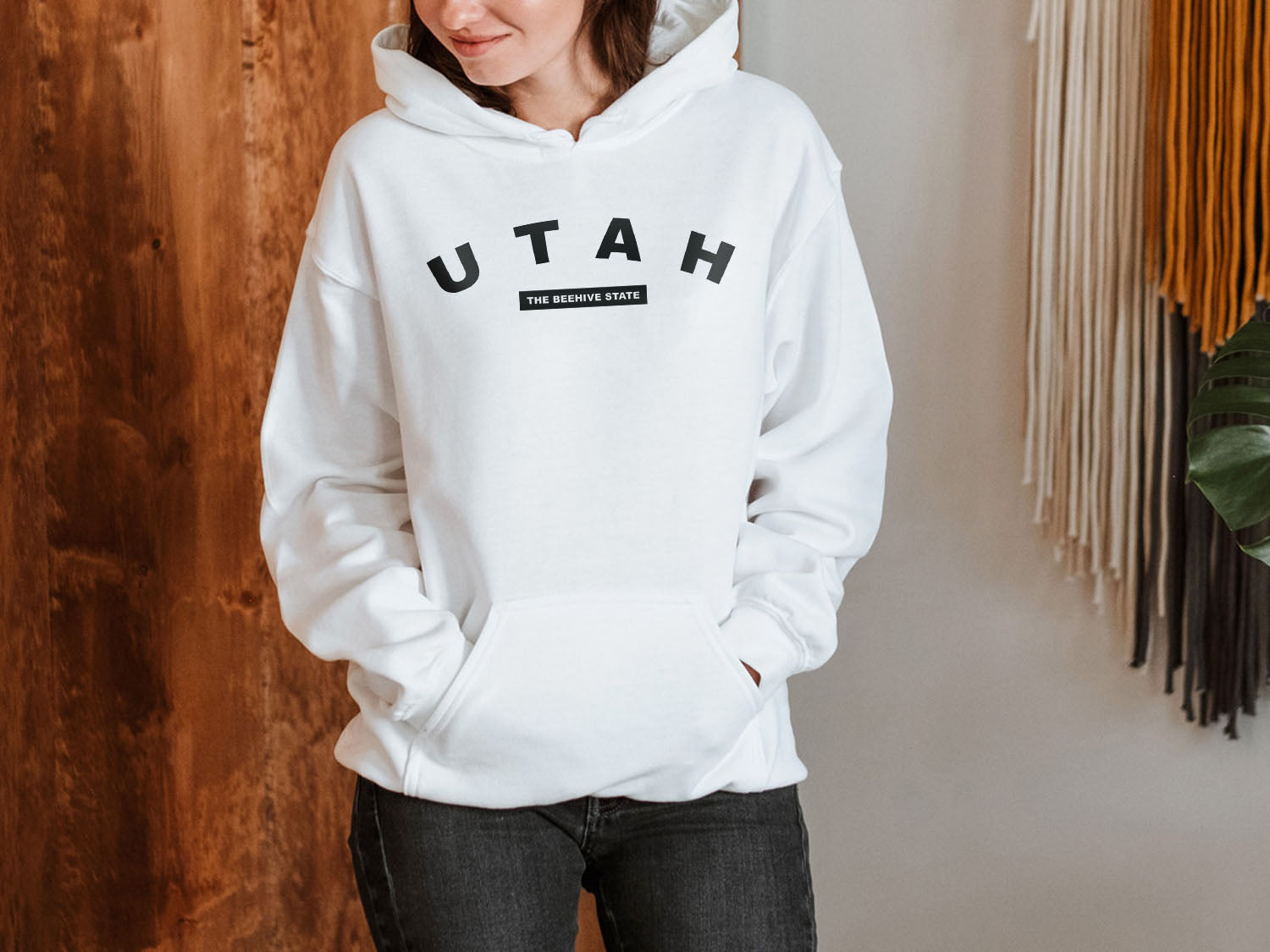 Utah The Beehive State Hoodie - United States Name & Slogan Minimal Design Printed Hoodie
