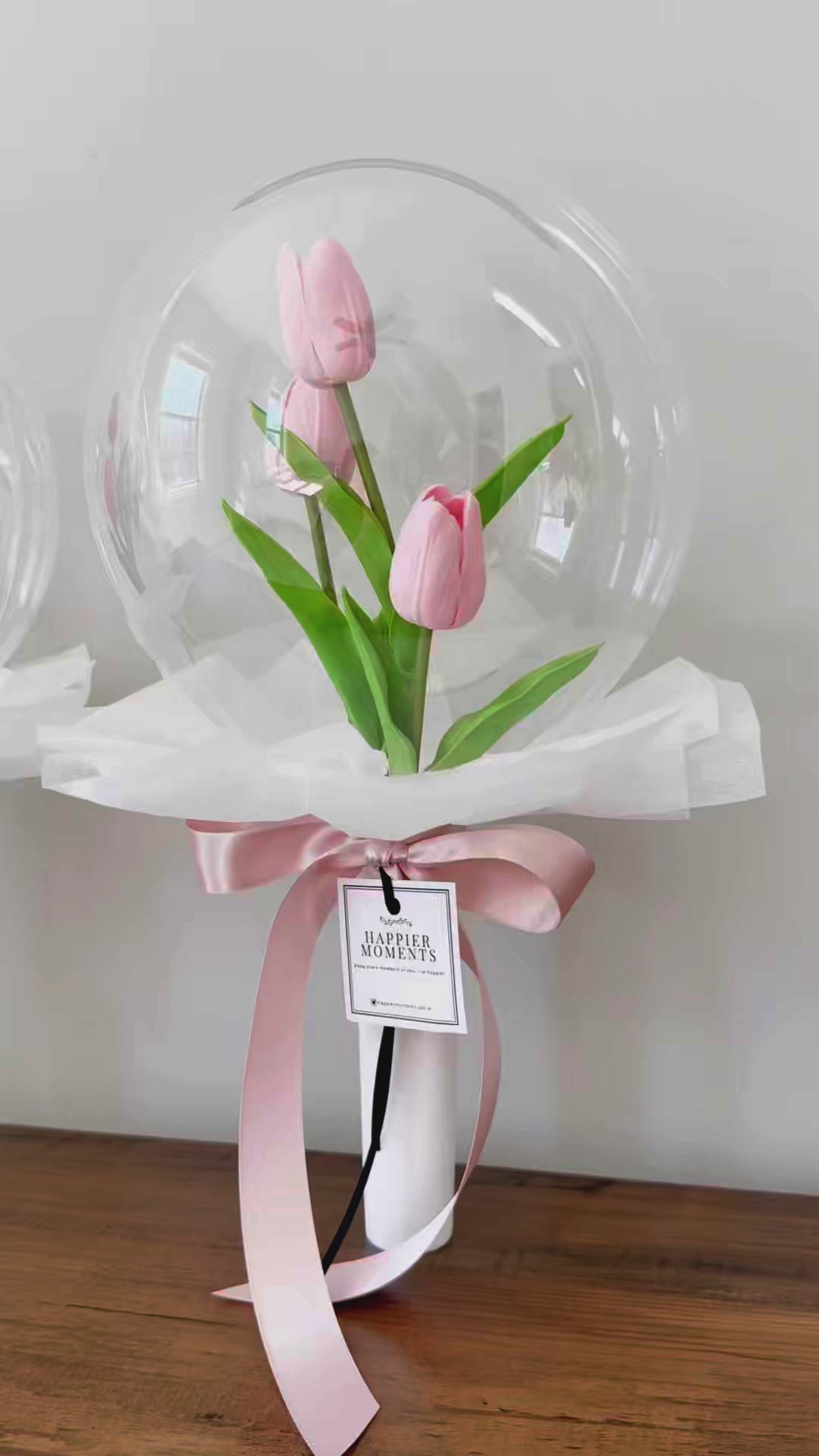 ➼ Artificial Flowers, Clear Balloon, Silky Ribbon, Tissue Papers, Bouquet Handle