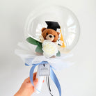 Mini Graduation Teddy Bear White Rose Flower Balloon Bouquet | Birthday Mother's Day Valentine's Anniversary Graduation Gift