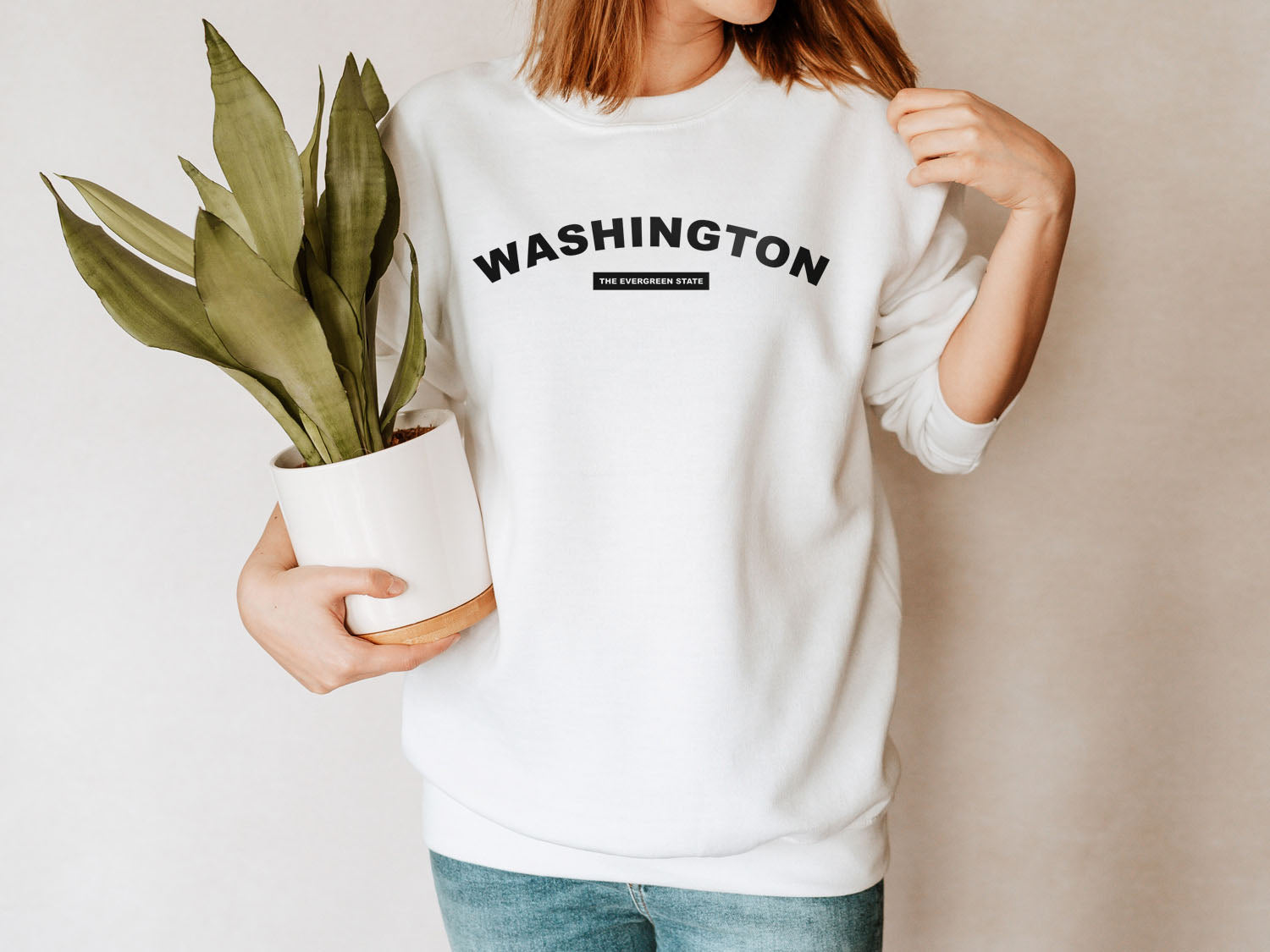 Washington The Evergreen State Sweatshirt - United States Name & Slogan Minimal Design Printed Sweatshirt