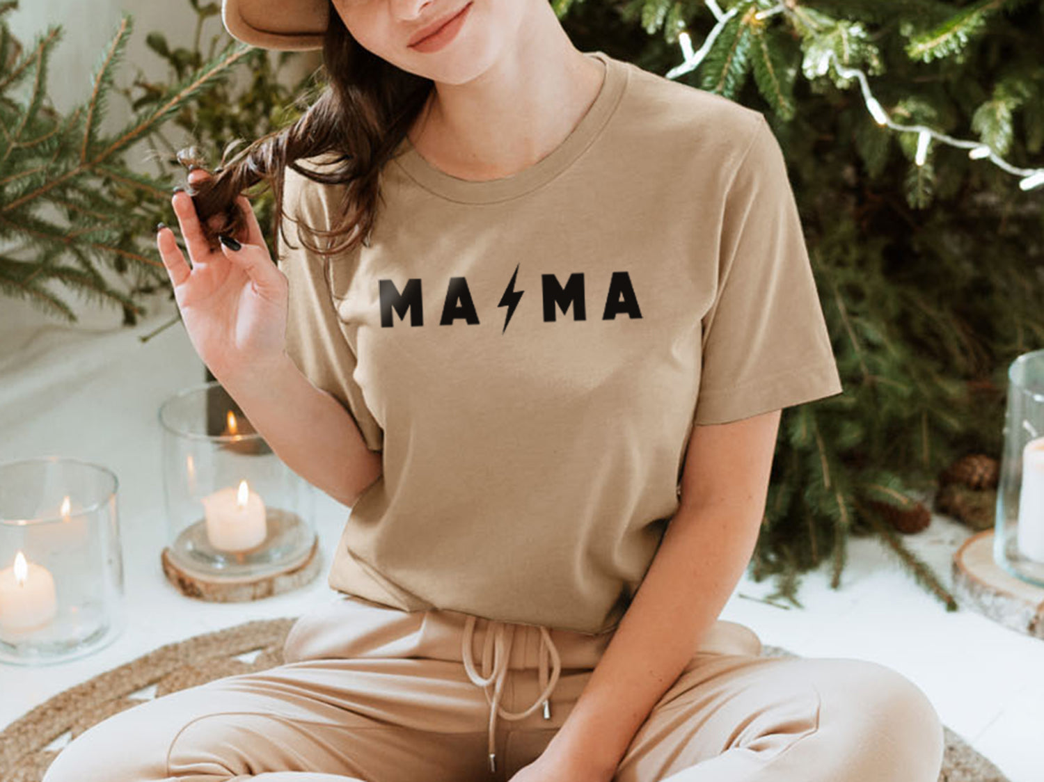 Mama Lightning Bolt T-Shirt - Minimalistic Mother Design Printed Short Sleeve T-Shirt