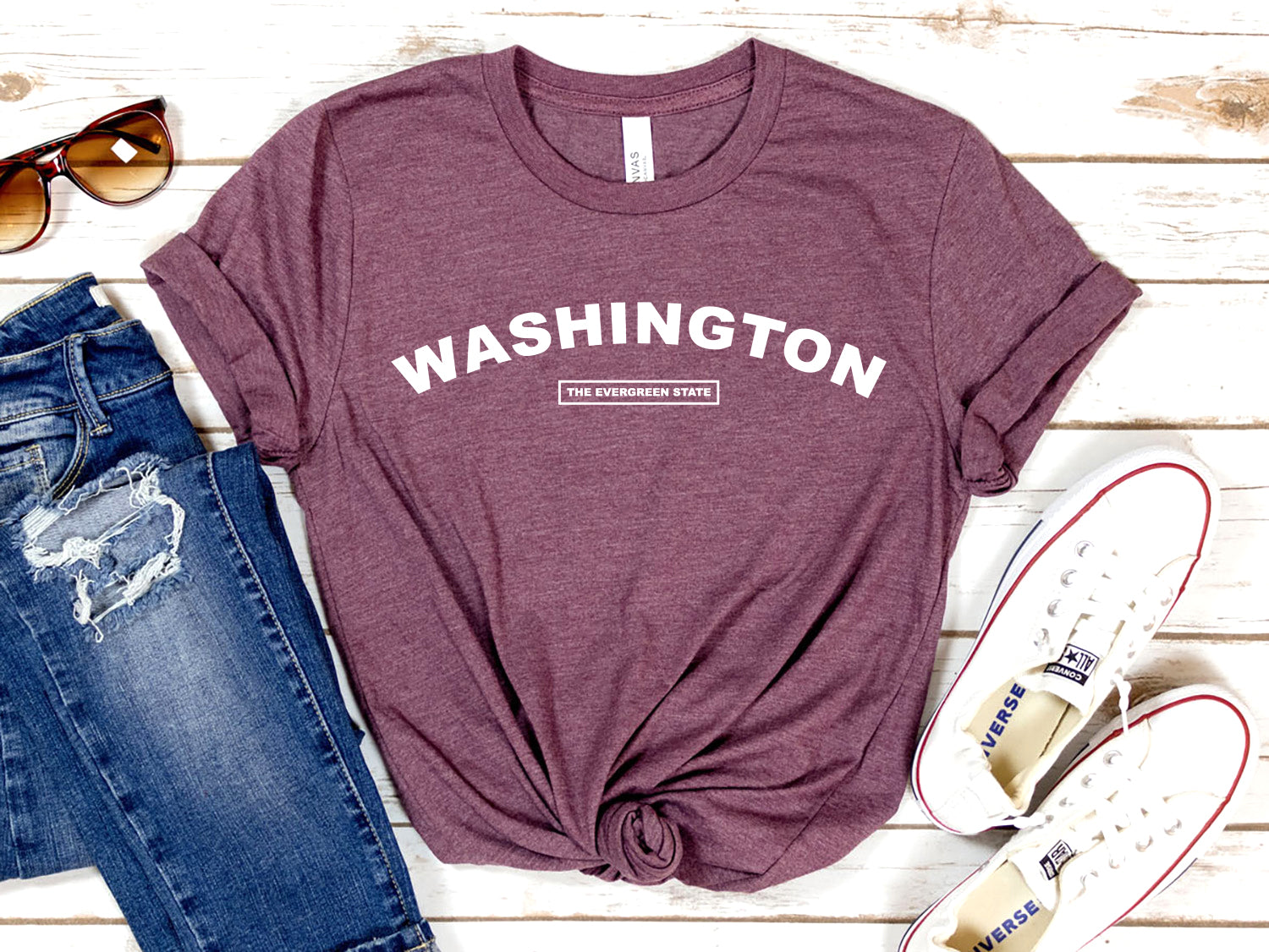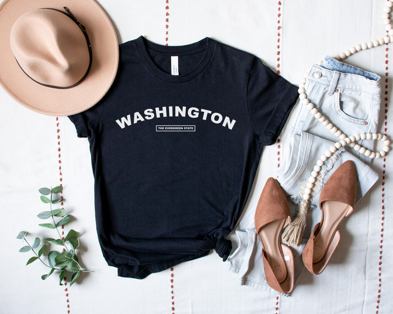 Washington The Evergreen State T-shirt - United States Name & Slogan Minimal Design Printed Tee Shirt