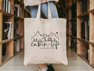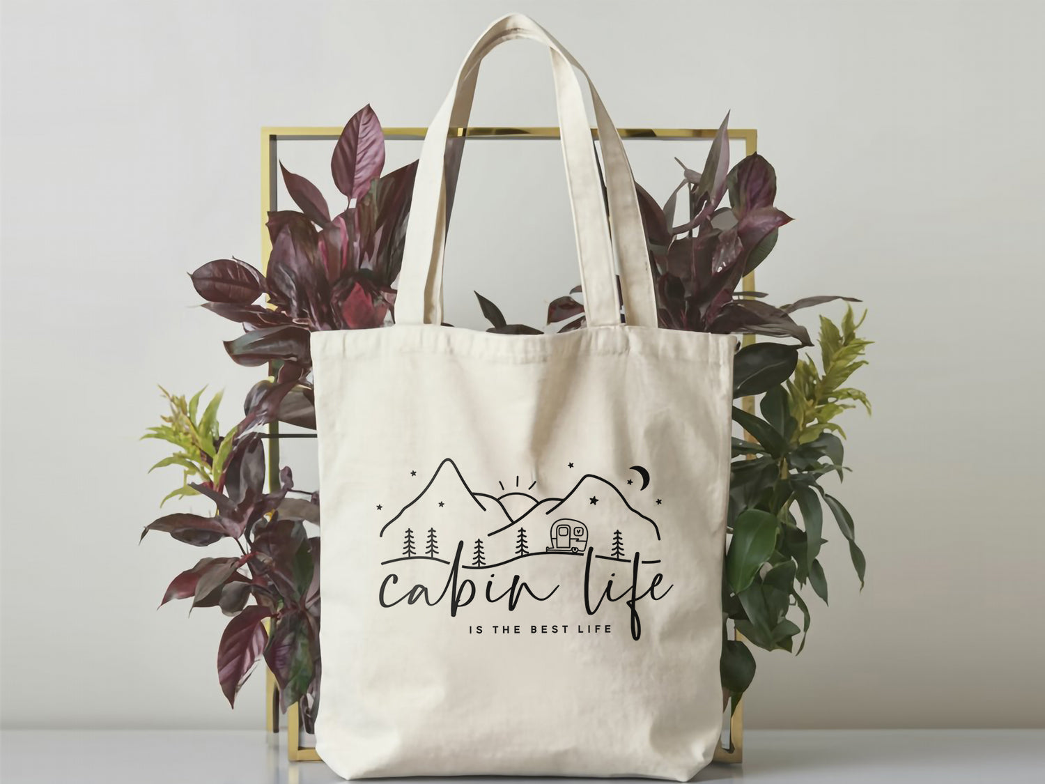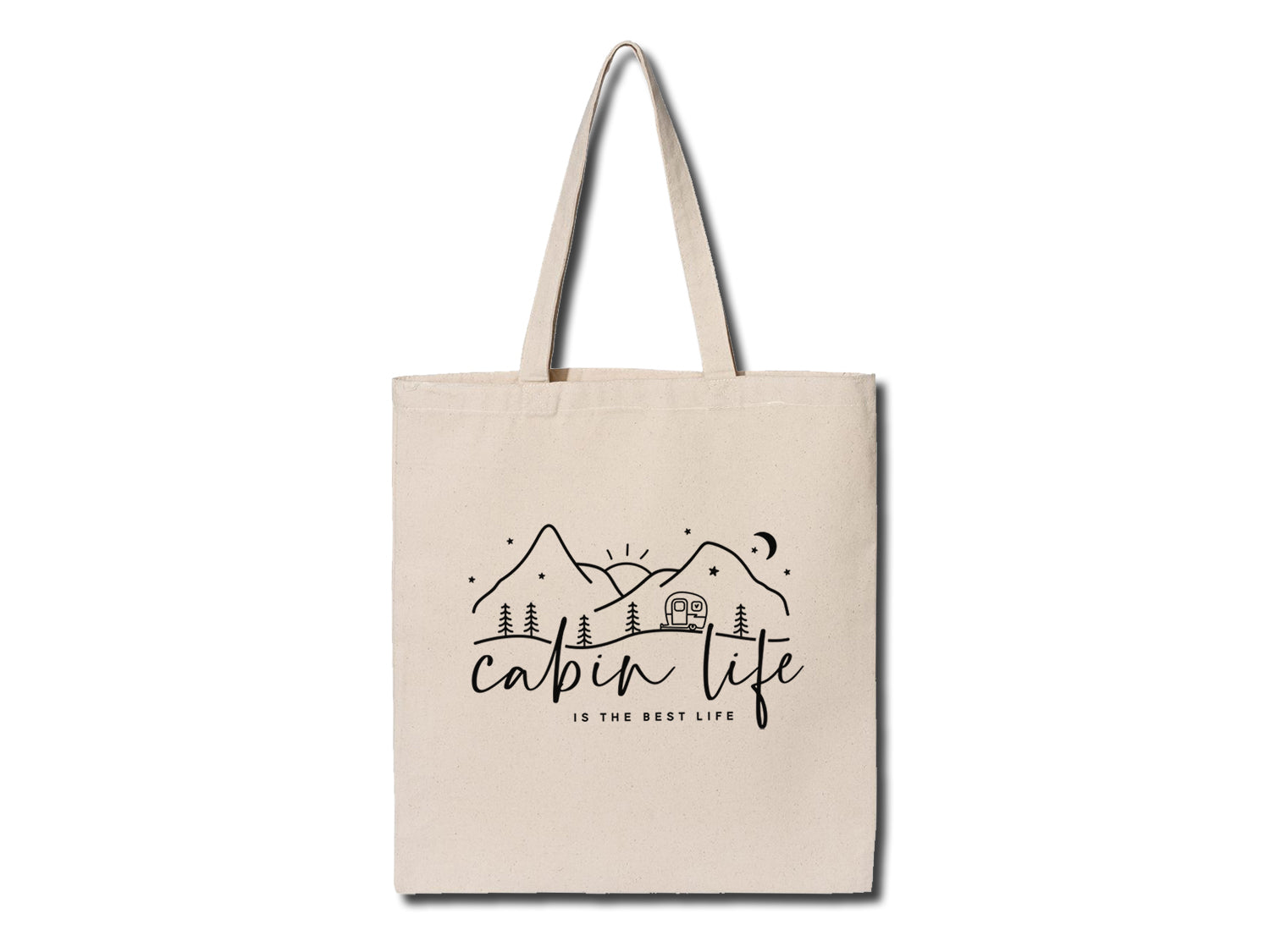 - Cabin Life Is The Best Life Cotton Natural Canvas Tote Bag - Outdoor Nature Camping Retro Vintage Design Printed Tote Bag