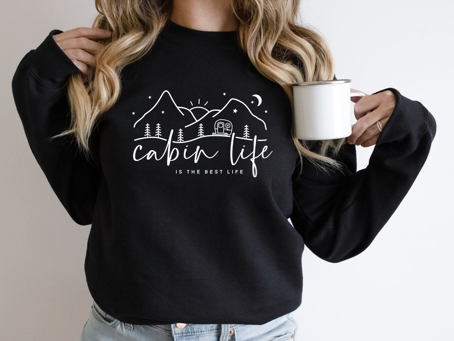 - Cabin Life Is The Best Life Sweatshirt - Outdoor Nature Camping Retro Vintage Design Printed Sweatshirt.