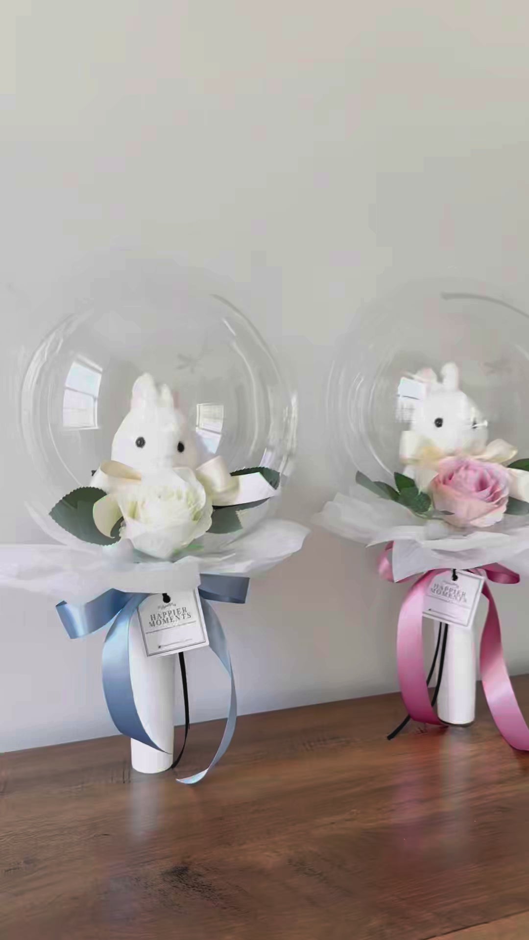 ➼ Bunny Plush, Artificial Flowers, Clear Balloon, Silky Ribbon, Tissue Papers, Bouquet Handle
