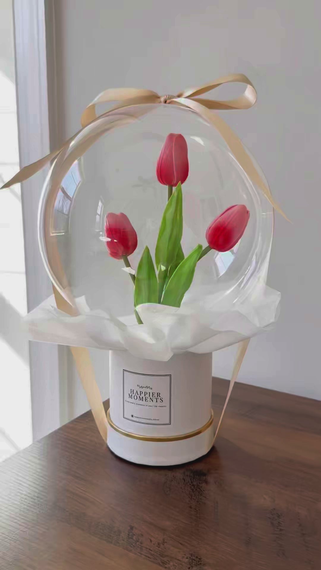 Mini Coral Tulip Flower Bobo Balloon Bouquet White Box | Birthday Mother's Day Valentine's Day Bridal Shower Baby Shower Anniversary Gift